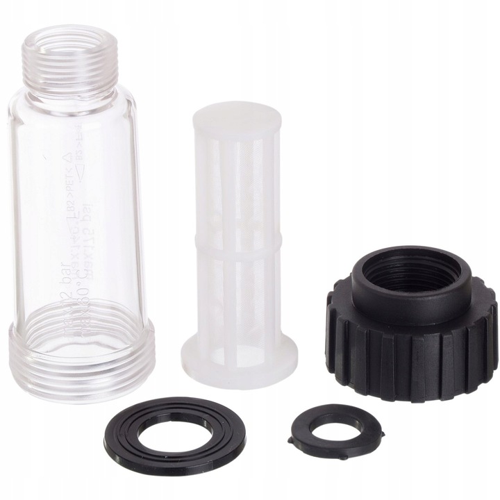 Oferowany filtr wody to produkt najwyższej jakości. Filtr z jednej strony jest wkręcany do myjki z drugiej strony podpinamy wodę. Standardowy gwint 3/4cala.