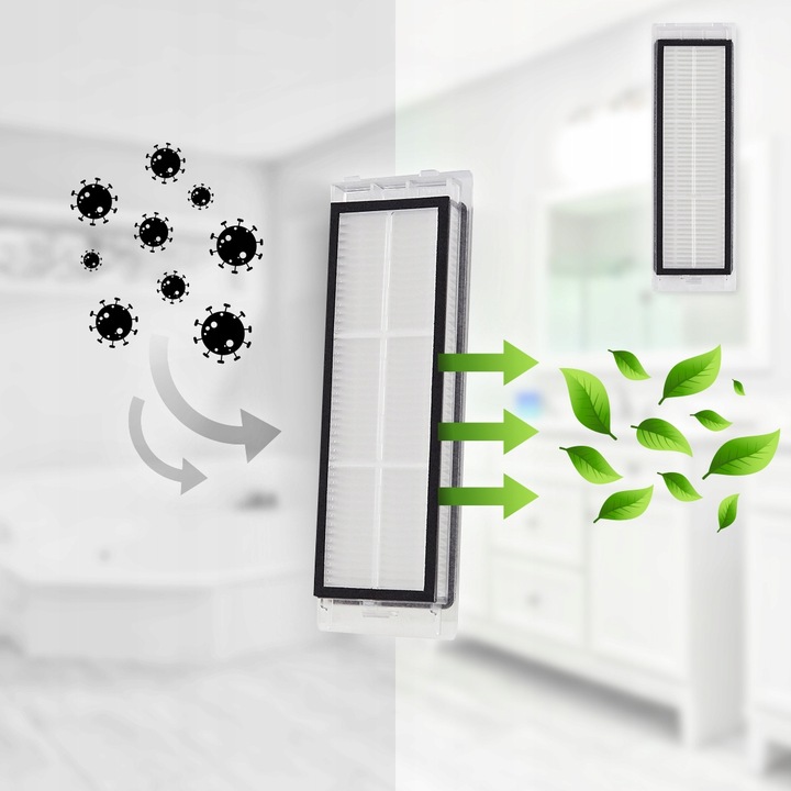 - Wydajność filtracji: Filtr powietrza zatrzymuje najdrobniejsze nieczystości, takie jak kurz, sierść, alergeny i roztocza, zapewniając czystsze powietrze w Twoim domu.